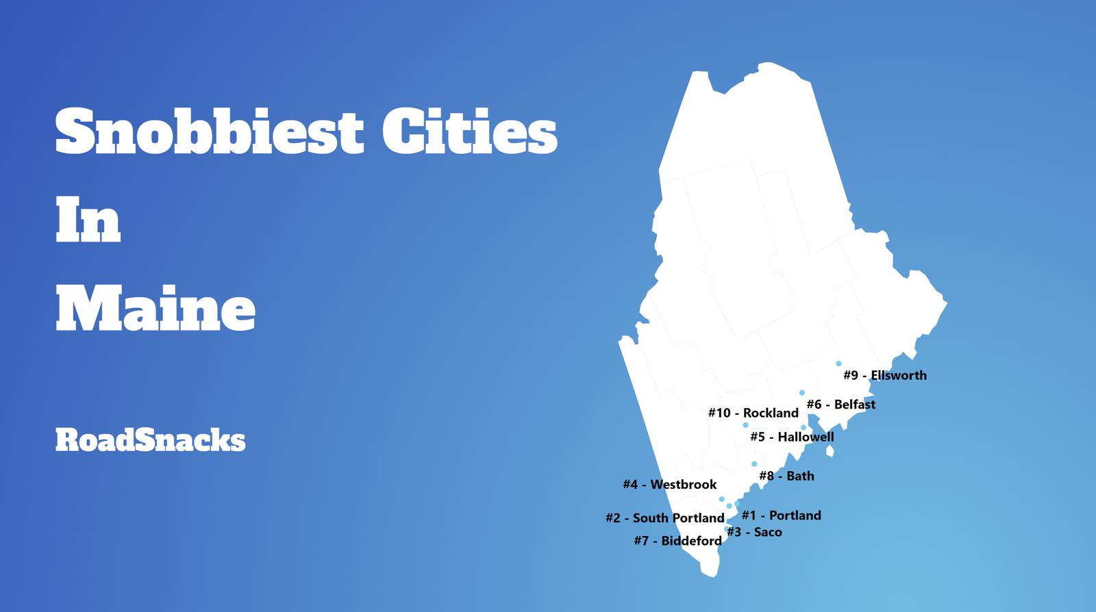 The snobbiest cities in Maine are Portland, South Portland, Saco, Westbrook, Belfast, Bath, Ellsworth, Hallowell, Biddeford, and Auburn.