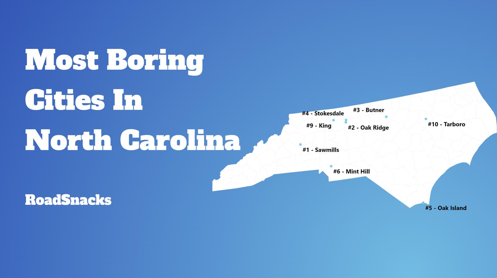The most boring cities in North Carolina are Oak Ridge, Mills River, King, Oak Island, Butner, Stokesdale, Sawmills, Tarboro, Mint Hill, and Lewisville.