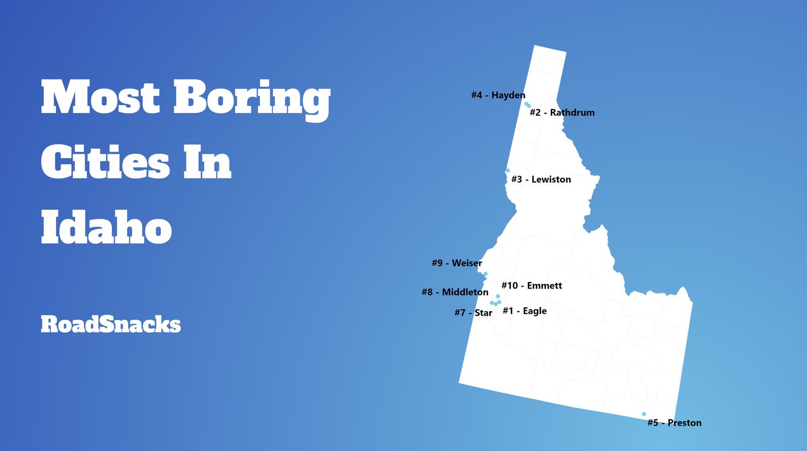 The most boring cities in Idaho are Eagle, Rathdrum, Hayden, Preston, Lewiston, Star, Kuna, Rigby, Weiser, and Emmett.