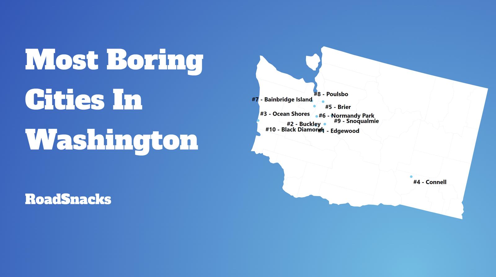 The most boring cities in Washington are Buckley, Ocean Shores, Brier, Connell, Bainbridge Island, Edgewood, Black Diamond, Normandy Park, North Bend, and Poulsbo.