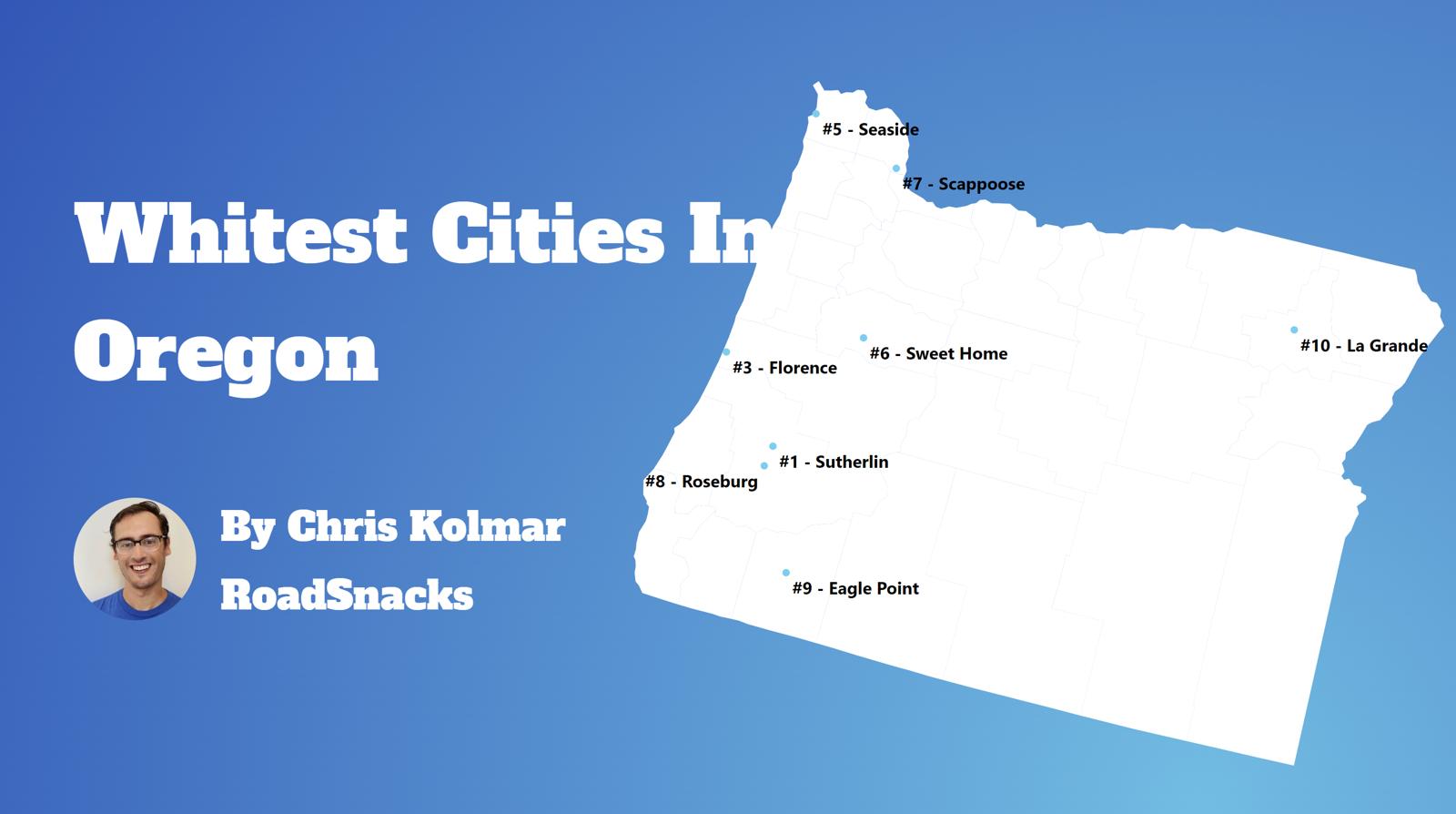 The most White cities in Oregon are Sutherlin, Seaside, Baker City, Florence, Oregon City, Molalla, Eagle Point, Sandy, Roseburg, and Sweet Home.