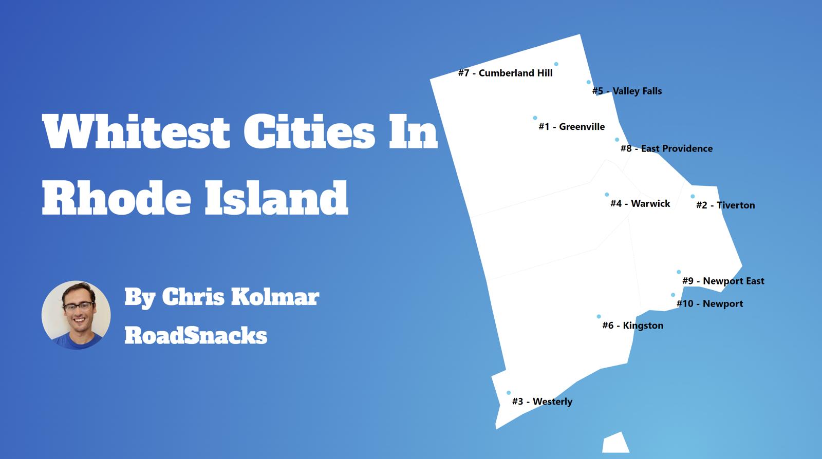 The most White cities in Rhode Island are Greenville, Westerly, Tiverton, Warwick, Kingston, Newport East, Cumberland Hill, Valley Falls, East Providence, and Newport.